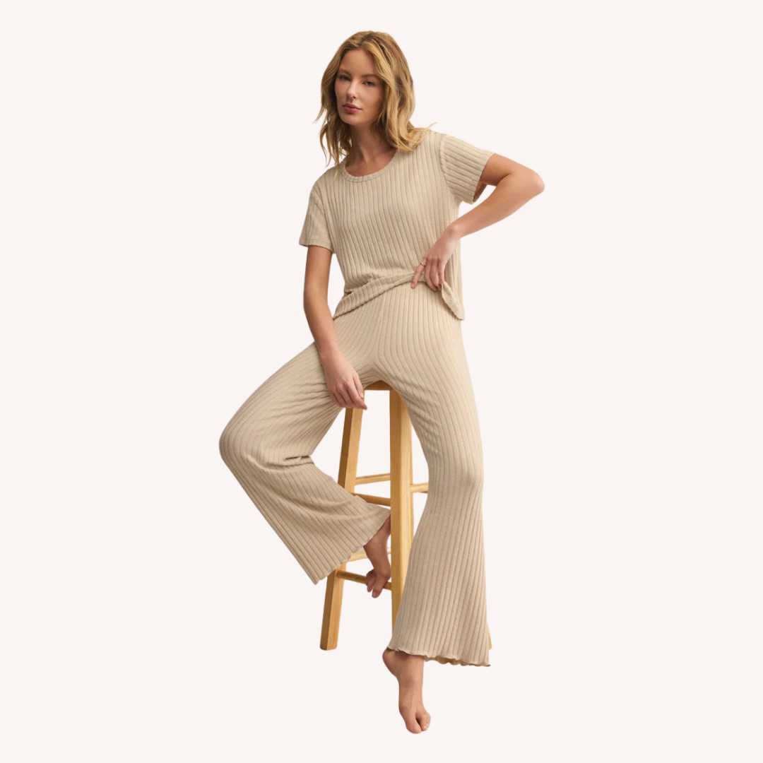 Dawn Smocked Rib Pant- Oatmeal Heather