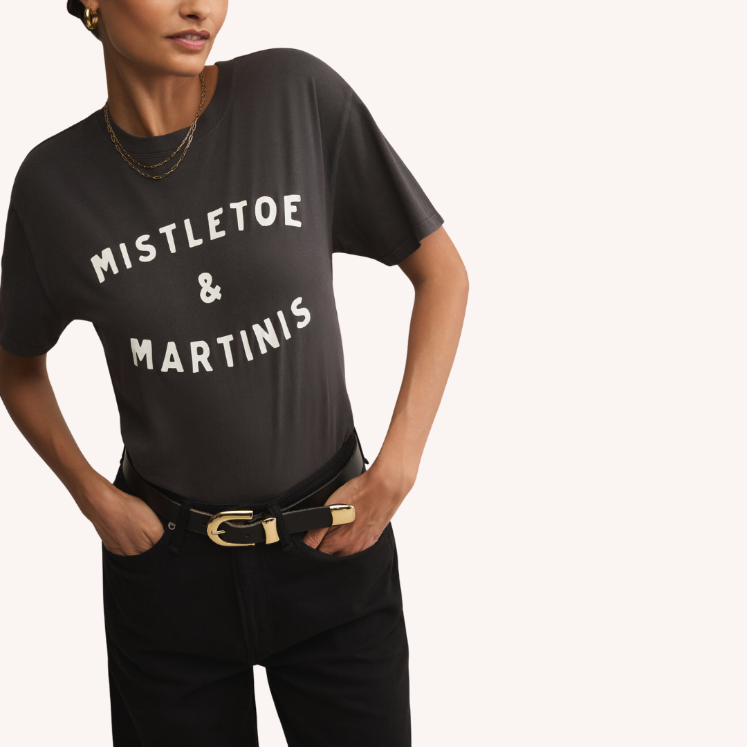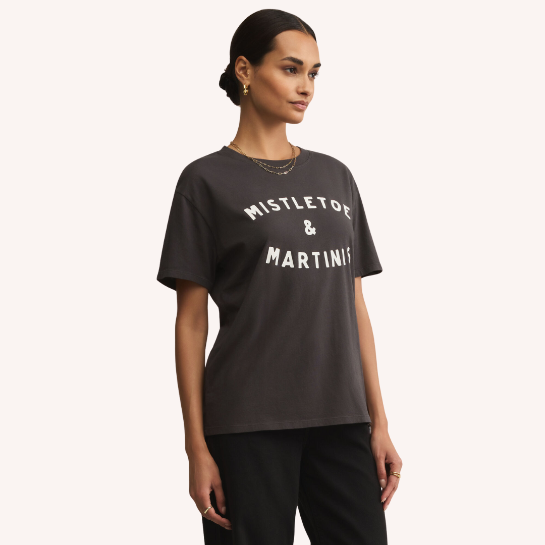 Mistletoe Boyfriend Tee- Black Sand